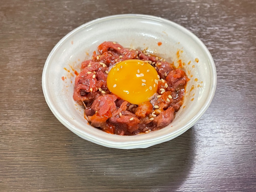 新鮮な馬肉を卵黄でとろりと包んだ、人気の一品です。