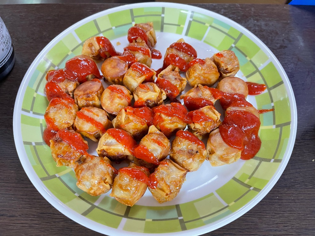 ジューシーな焼売にシラチャーソースの刺激がすっと走る、クセになる一品。三連休中日の今日にもぴったりのアクセントです。