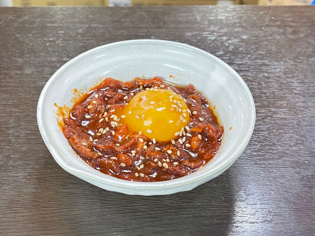 濃厚な卵黄と甘辛ダレが絡む桜肉は、立ち飲みでもしっかり満足できる一皿です。